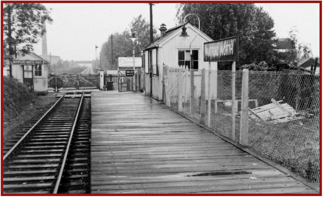 Watford North Halt looking towards Bricket Wood. Watford North sidings on the left beyond the crossing.