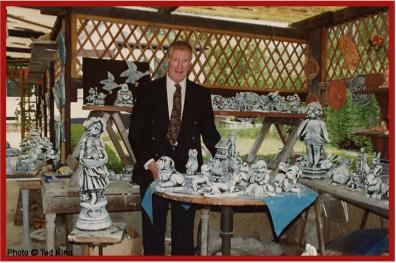 Living in Bedmond near Kings Langley, one of Ted's pastimes was making concrete garden ornaments, mainly gnomes and small animals, a craft which he learnt from his father. He enjoyed making ornaments for most of his life, often selling them at markets and car boot sales.